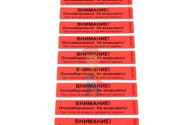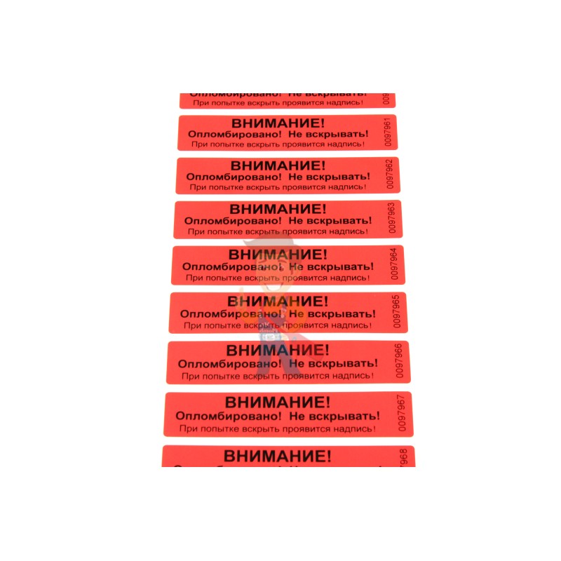 Кроме того, при несанкционированной попытке снятия пломбы, проявляется надпись, а повторно приклеить стикер невозможно.