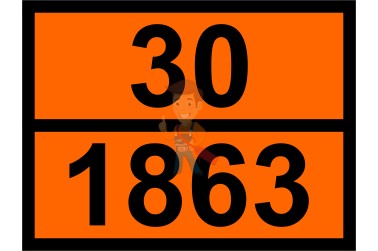 Знак ООН 30/1863 крепится на автомашины, цистерны или отсеки, в которых транспортируется авиационный керосин. Номер выполнен на самоклеящейся плёнке СКП-580. В качестве покрытия применяется светоотражающая оранжевая пленка. Посредством широкой полосы изделие по горизонтали делится пополам, где вверху указан опознавательный код опасности, внизу – номер ООН вещества. Габариты таблички – 400х300 мм.